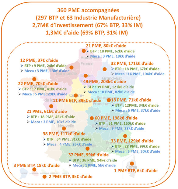 SiMSEO a accompagné 360 PME de l’Industrie Manufacturière, et du BTP à s’équiper et à se former à l’usage de la simulation, ou dans la réalisation de projets pilotes, par le biais des 77 offres de service.