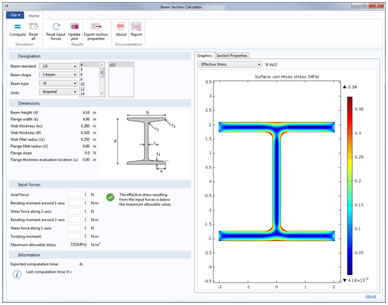 Avec cette appli de simulation, les utilisateurs peuvent tester différentes poutres, matériaux et charges afin d'analyser les contraintes, la tension et le déplacement qui en résultent. |