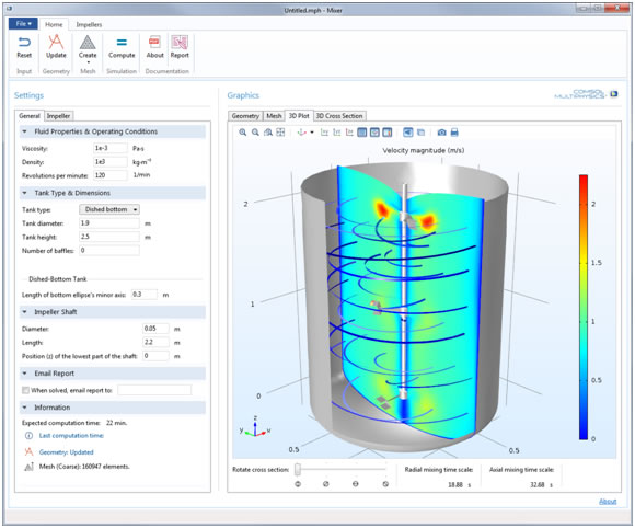| Cette appli de simulation est destinée à la simulation de mélangeurs équipés d’hélices radiales ou axiales. Pour une géométrie donnée, l'application calcule l'efficacité du mélange. Le dispositif, disponible sous trois formes différentes, peut également être équipé de chicanes et jusqu’à onze types d’hélices différentes. |