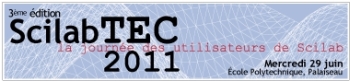 ScilabTEC 2011 - Mercredi 29 juin de 09h30 à 17h30 Une journée riche en conférences animées par des industriels sur leurs développements et applications sur le logiciel Scilab et des ateliers techniques organisés par l’équipe R&D du Consortium Scilab attend les utilisateurs de Scilab. Venez découvrir, apprendre et échanger sur les capacités du logiciel Scilab.