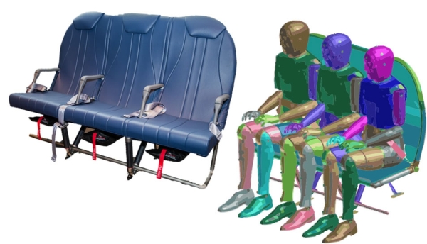 Le Siège Titanium, siège d’avion ultra-léger d’Expliseat – 1er prototype réel (à gauche), prototype virtuel certifié (à droite)