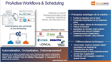 | Activeeon est un éditeur de logiciels open source proposant des solutions d'ordonnancement et d’orchestration pour l’automatisation et la scalabilité de l’IT, ainsi que la migration vers le cloud.