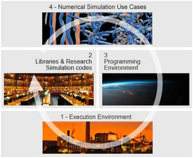 Le projet ELCI (Environnement Logiciel pour le Calcul Intensif) a pour objet de développer un ensemble logiciel complet et cohérent pour étendre les capacités des systèmes de simulation numérique et de calcul haute performance (HPC), avec notamment une nouvelle génération de pile logicielle pour le contrôle des super- calculateurs, de solveurs numériques et de logiciels de pré-, post-, co-traitements, d’environnement de program- mation et d’exécution, et d’en valider l’intérêt avec une mise en œuvre sur des cas applicatifs fortement significatifs.