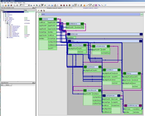 Ces composants sont des briques nécessaires aux couplages prévus entre les outils de EDF que sont Salome et Code Aster avec la plateforme Scilab. Une première version de couplage Scilab / Salome, basé sur YACS, le superviseur Salome, a été réalisées et à démontrer à la fois la faisabilité technique mais aussi son apport fonctionnel.
