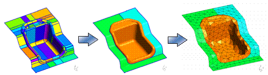Du coté de Salome, le développement d'une extension des fonctionnalités de GEOM pour la génération des géométries outils à partir de la géométrie pièce a été réalisé. De plus, le mailleur GMSH a été intégré au module SMESH pour pour bénéficier du maillage trans-patch, du remaillage et des mailleurs quadrangles (DelQuad, frontal).