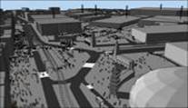 L’objectif du projet visait le développement d’une plateforme d’animation comportementale 3D temps-réel des principaux acteurs (personnes, foules, véhicules, trafics, flux, circulation) de la vie urbaine, immergés dans leur environnement 3D. Le cœur du projet consistait dans la recherche et le développement d’un moteur d’animation comportementale basé sur les technologies d’Intelligence Artificielle.