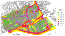 | Carte du bruit à différentes échelles : îlot, quartier, métropole (Document Ifsttar/Irstv) |