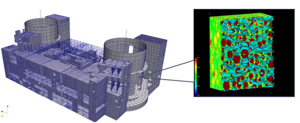 Le besoin de l’évolution de Code_Aster vers une version HPC est porté par l’évolution des études vers un niveau de complexité de plus en plus élevé en termes de modélisation, vers les simulations multi-échelles et multi-physiques, vers le traitement des incertitudes, etc. Pour illustrer, quelques exemple de simulation, allant de la caractérisation du comportement des matériaux jusqu’à la structure sont présentés.