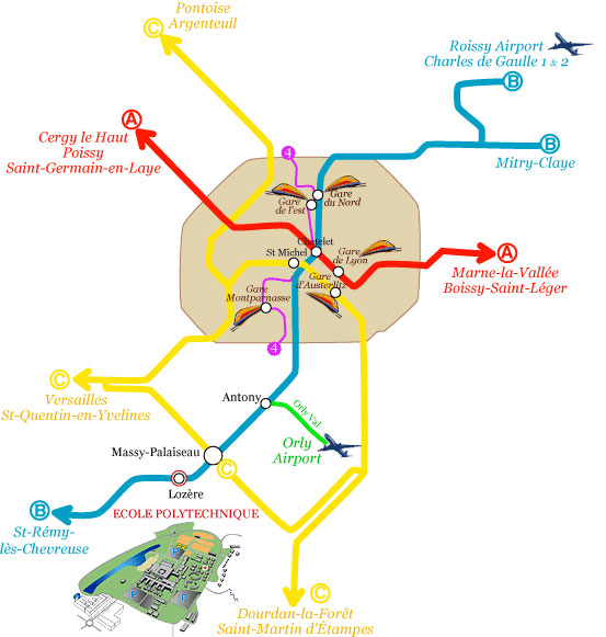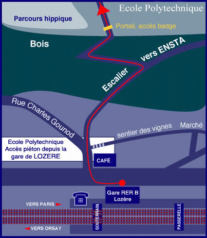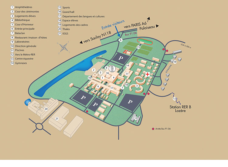 Prendre le bus TransEssonne 91.06 (Horaires) et descendre arrêt "Les Joncherettes", "Lozère", ou "Laboratoires" de l'École.