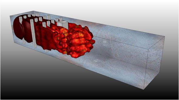 A new INCITE program dedicated to the simulation of explosions has been announced for the CFD team of CERFACS with an allocation of 86 000 000 processor hours in 2014. The objective is to study accidental gas explosions in buildings and develop models for turbulent pre-mixed flames. The CFD team, with the support of TOTAL, has access to a unique experimental database (an explosion chamber at scales 1, 6 and 24 tested for multiple gases) and can validate his LES tools for a range of scales previously not accessible. To perform these computations, CERFACS will rely on the AVBP code, one of the most advanced combustion solvers developed for parallel machines like the ALCF’s Mira. CERFACS is one of the very few groups having time allocations both in PRACE and INCITE.