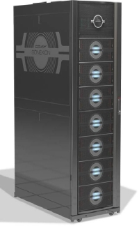 Each CS-Storm cluster rack holds up to 22 2U rackmount CS-Storm server nodes. Each server integrates eight accelerators and two Intel® Xeon® processors, delivering 246 GPU teraflops of compute performance in one 48U rack. The system is available with a comprehensive HPC software stack including tools that are customizable to work with most open-source and commercial compilers, schedulers and libraries.